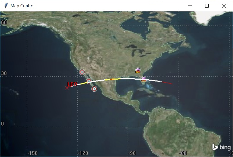 The Map control can be used to insert a 2D view into your application. This control matches the 2D window from the STK Desktop application.