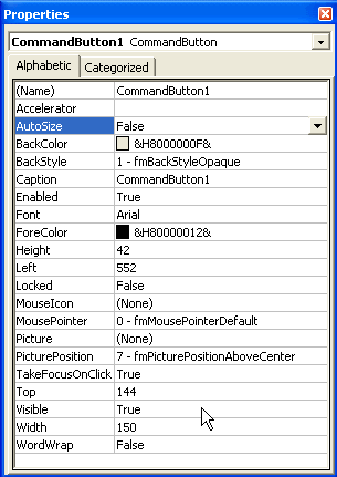 | (Name) | Caption | Left | Top | Width | Height | Enabled |