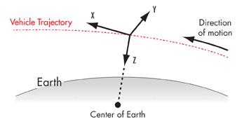 For satellites and missiles the local coordinate system is VVLH CBI (Central Body Inertial).